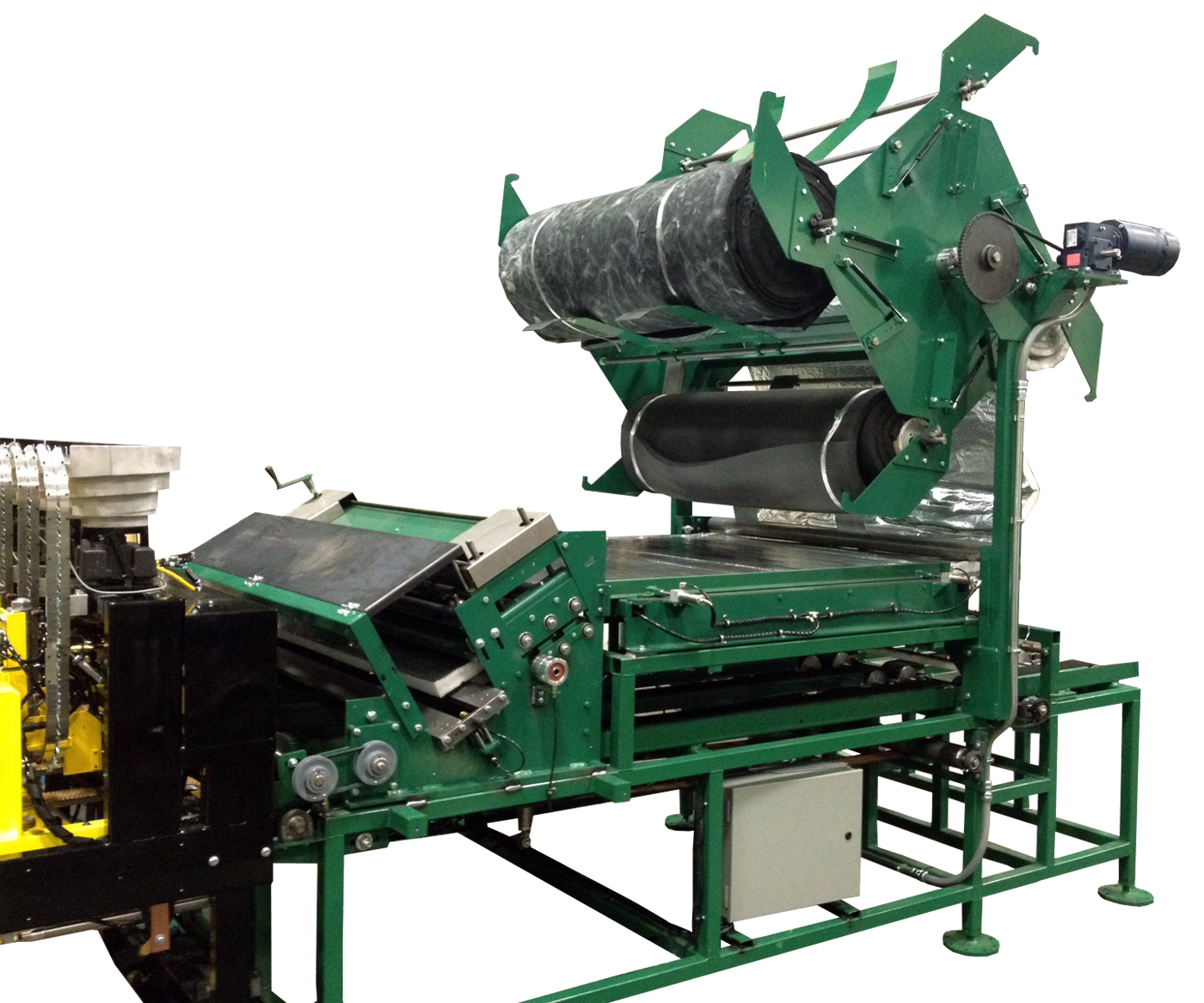Optional four-position insulation coil holder (shown to the right) is for long runs of the same liner or short runs of different liner. You benefit in both situations. Down time is greatly reduced between insulation changeovers with preloaded coil holders.