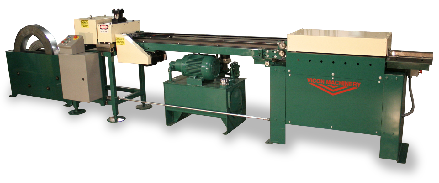 The Vicon Coil Strip Feed Line can be configured in several ways for production of various profiles. Coil metal stock is uncoiled, straightened and cut to length either before or after the rollform machine depending on the application. The line is controlled by the Vicon PC Control to ensure accurate finished parts and can be synchronized to the Vicon office program.